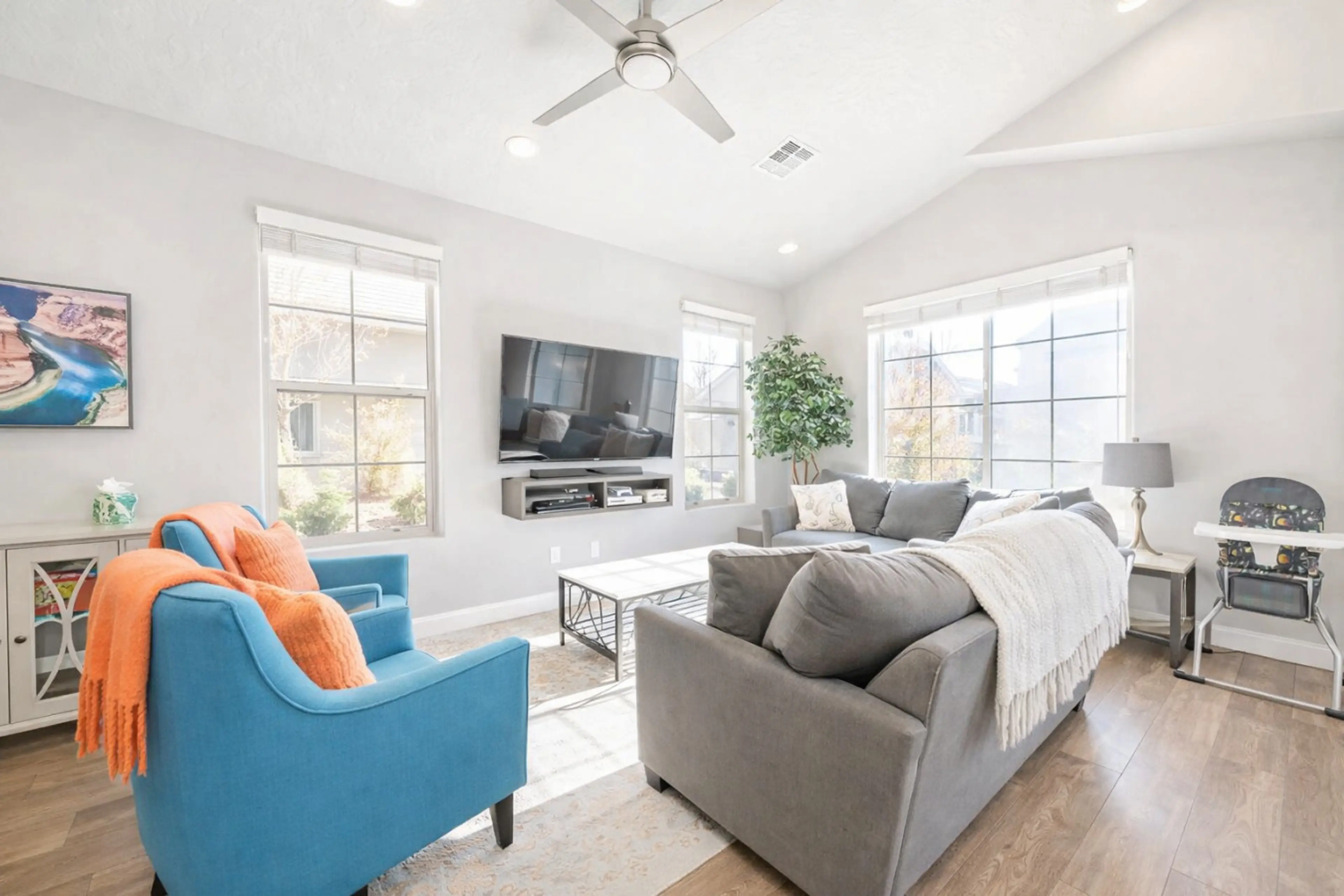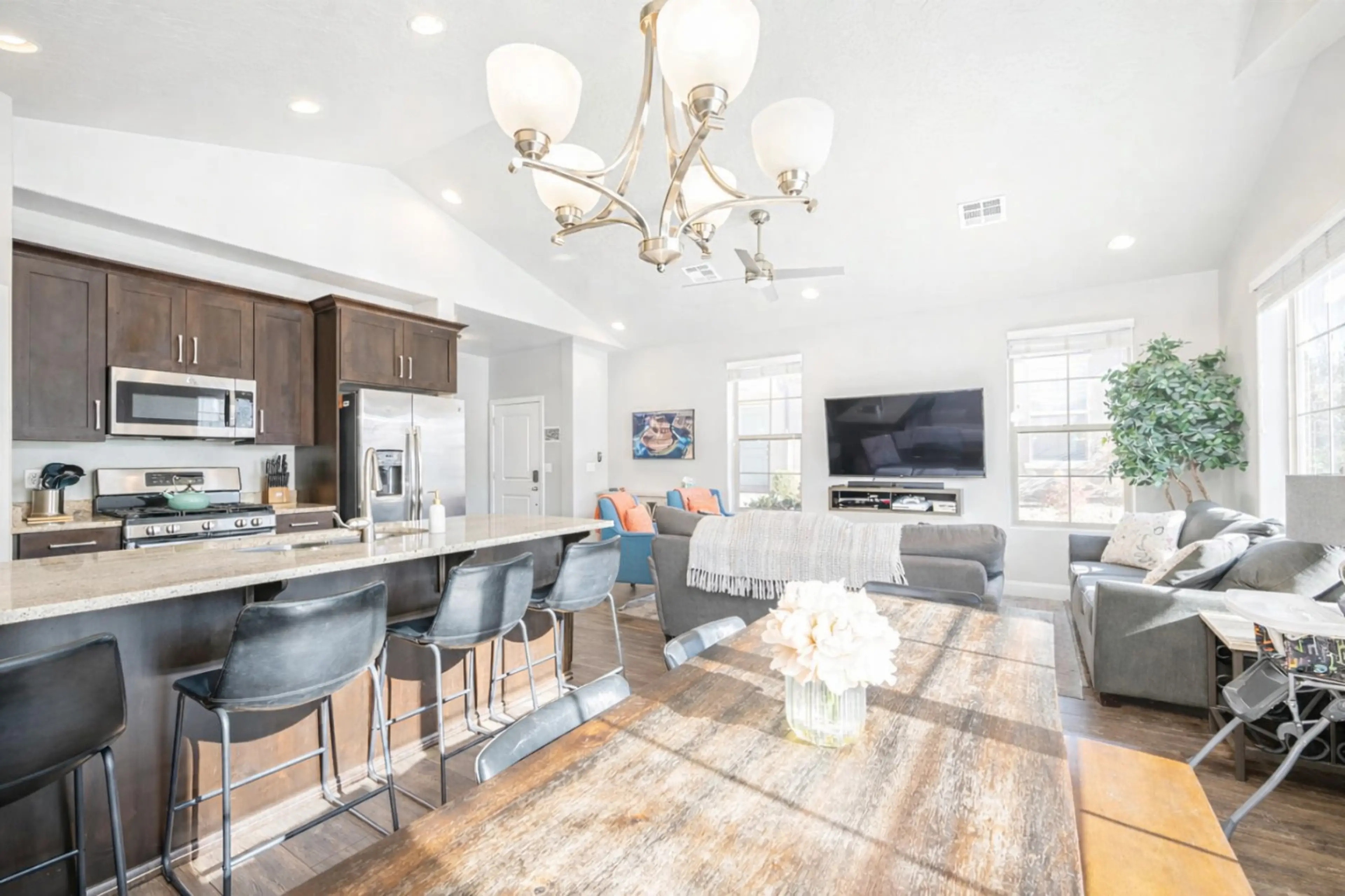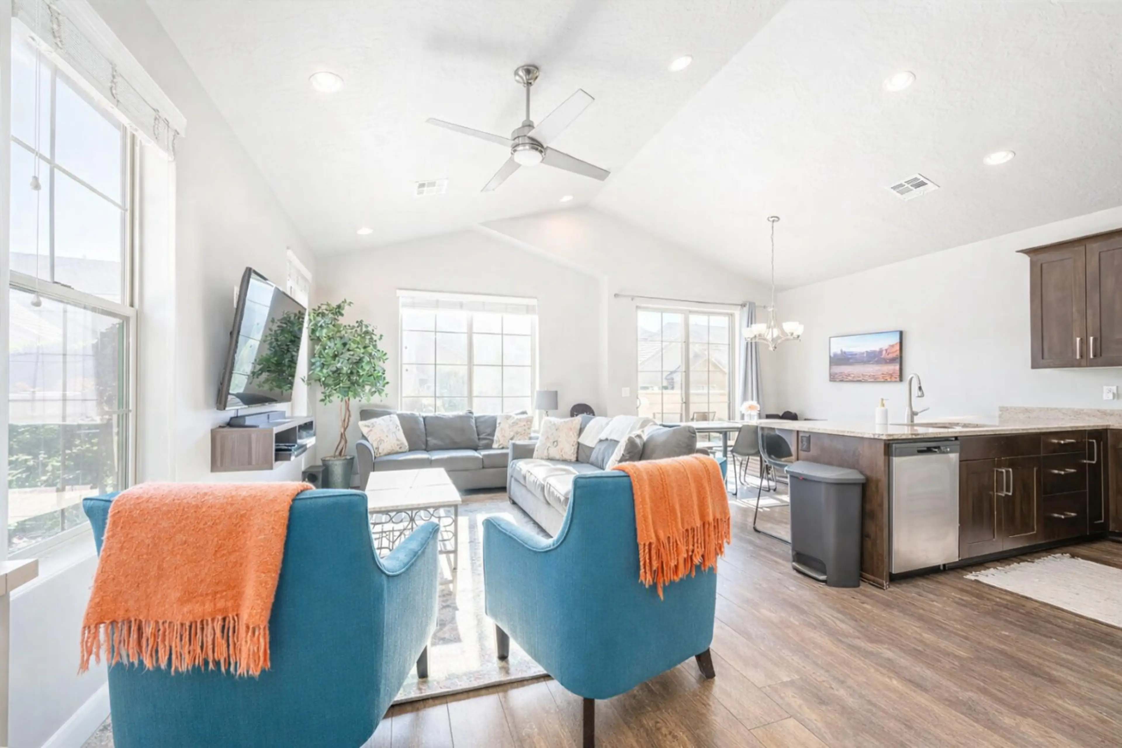 Desert getaway perfect for families! This stunning 3-bed, 3.5-bath townhouse is ready to make your vacation unforgettable. Open floor plan, gorgeous decor, and central location; everything's within reach. Take a dip in the heated pool (lap lanes included!) or unwind in the hot tub – year-round comfo...